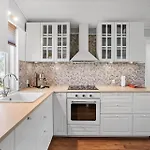 M188-Gedser-Bynkevejen-9 villa is uitgerust met een ingerichte keuken met een oven en een vaatwasser.